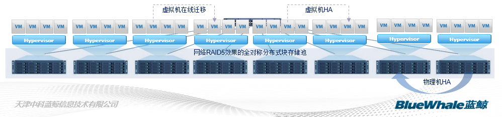 中科蓝鲸BWRAID是一个以标准存储服务器(x86)为存储硬件、通过软件核心技术构造标准遵从的集群SAN存储系统。