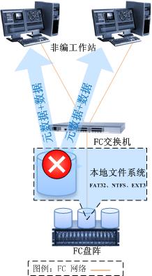 虽然SAN架构(无论是IP SAN还是FC SAN)具有物理上的互联互通性即任何一个逻辑卷可以同时被任何一个主机访问,但是由于传统的本地文件系统(例如NTFS或EXT4)在设计上均不支持两台主机同时读写同一块磁盘(也就是同一个逻辑卷)这一功能,所以“SAN+本地文件系统”的方式是无法实现“多台工作站或服务器对来自于SAN的同一个或同一组卷进行同时读写操作”这一应用模式的。上述这些非结构数据占主导的应用中主要的解决方案是采用“卷共享软件”或“SAN文件系统”来满足“多台工作站或服务器对来自于SAN的同一个或同一组卷进行同时读写操作”这一需求。