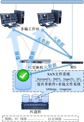 当非结构化数据爆炸式增长容量远超结构化数据的时候,世界逐步跨入所谓大数据的时代,其应用的主要特征有:海量、非结构化、跨操作系统平台、文件共享、单客户端与聚合带宽的高性能。在非结构数据占主导的诸如:广电非线性编辑、媒体资产管理、大规模流媒体播出系统、高性能计算、大型网站系统、遥感信息处理、云计算、云存储、大型信息管理系统等诸多应用场景中需要实现“多台工作站或服务器对来自于SAN的同一个或同一组卷进行同时读写操作”这一存储效果。