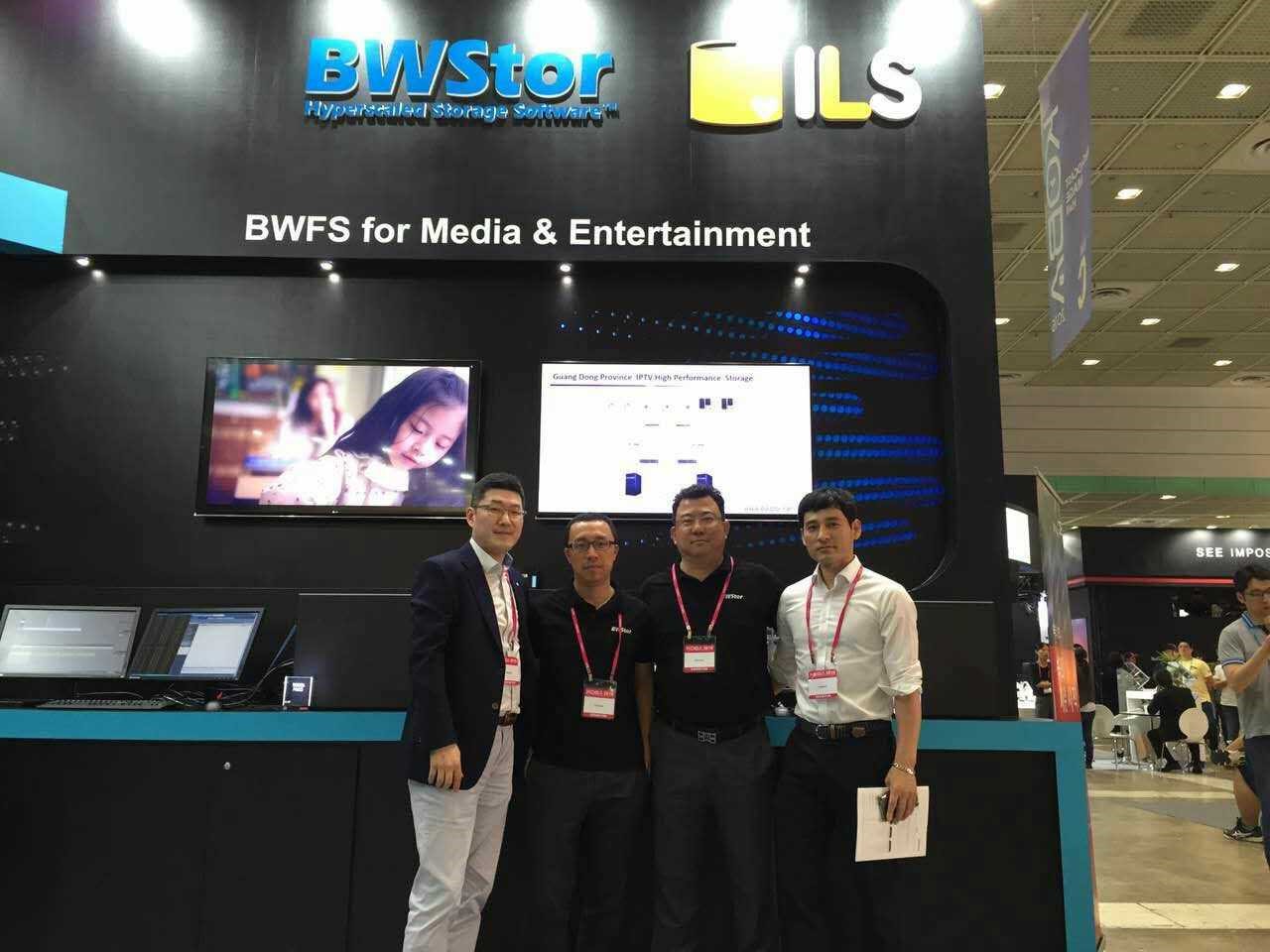 中科蓝鲸公司和合作伙伴韩国LENOVO在KOBA2016上隆重展出了广电存储领域重点产品——蓝鲸文件系统(BWFS)和蓝鲸集群NAS(SONG),以及针对广电应用的解决方案,受到与会人员的广泛关注,反响强烈,KBS、SBS等客户,以及一些渠道表示出了浓厚兴趣。